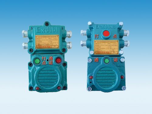 該產(chǎn)品集打點按鈕、防爆燈、防爆電鈴、三通接線盒為一體,有四個出線口,取代了三通接線盒,用高亮發(fā)光二極管和礦用防潮揚(yáng)聲器取代了防爆燈和隔爆電鈴。